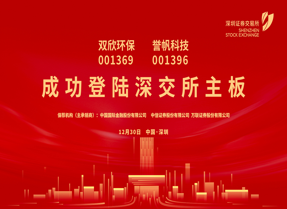 雙欣環(huán)保(證券代碼:001369)、譽帆科技(證券代碼:001396)于2025年12月30日登陸主板。